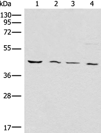 HEPG2, Jurkat, A431 and NIH/3T3 cell lysates |