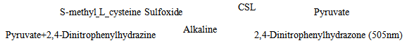 半胱酰胺亞砜裂解酶可以催化S-甲基-L-半胱氨酸亞砜生成丙酮酸。丙酮酸可與2,4-二硝基苯肼反應生成2,4-二硝基苯腙,在堿性條件下顯棕紅色;測定505nm吸光度的變化,即可計算CSL酶活性。