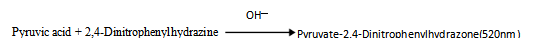 丙酮酸通過乙酰 CoA 連接葡萄糖、脂肪酸和氨基酸三大代謝, 起著重要的樞紐作用。 丙酮酸與 2,4-二硝基苯肼作用, 生成丙酮酸-2,4-二硝基苯腙, 在堿性溶液中呈櫻紅色。