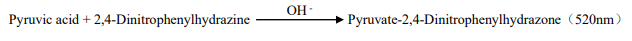 丙酮酸通過乙酰 CoA 連接葡萄糖、脂肪酸和氨基酸三大代謝,起著重要的樞紐作用。丙酮酸與 2,4-二硝基苯肼作用, 生成丙酮酸-2,4-二硝基苯腙,在堿性溶液中呈櫻紅色。